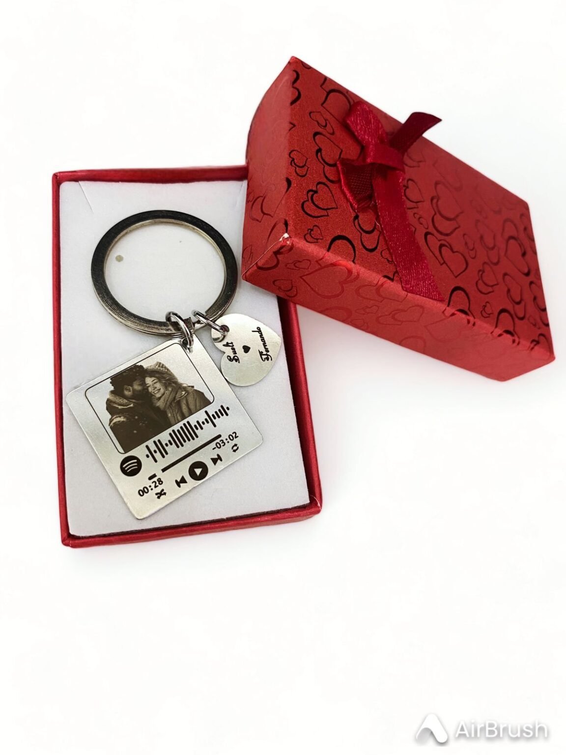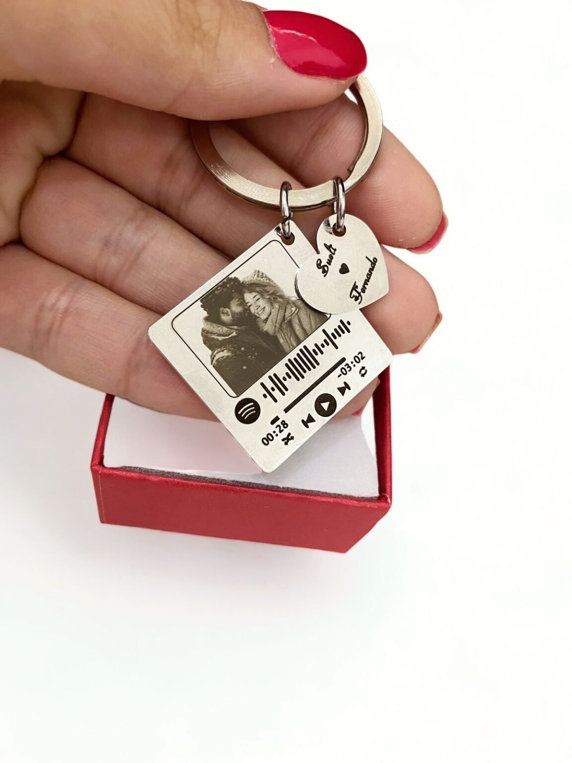 Chaveiro ideal para presentear quem você ama de forma criativa, peça produzida em aço inox e gravação a laser. Após a compra nos envie as informações pelas mensagens/chat. (No pingente de coração podemos gravar qualquer coisa, seja nome, frase… ). OBS: NÃO ACOMPANHA A CAIXINHA QUE ESTA NA FOTO. Acompanha uma embalagem de courino.
