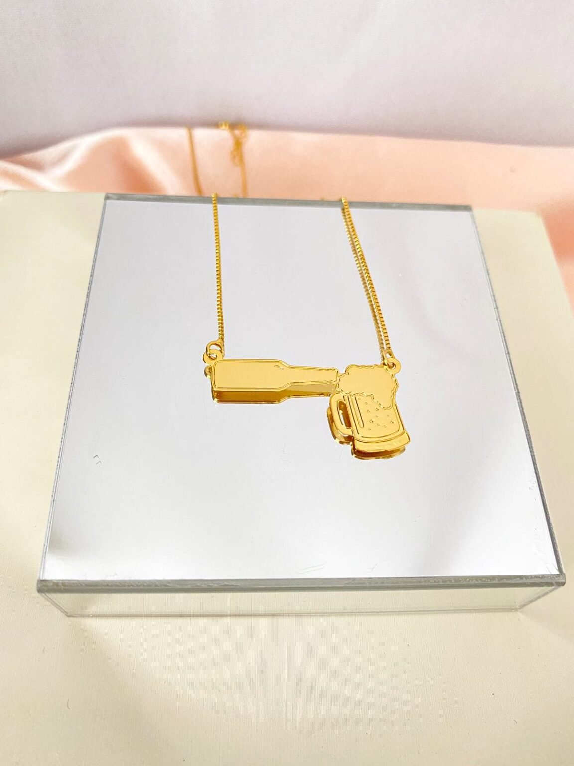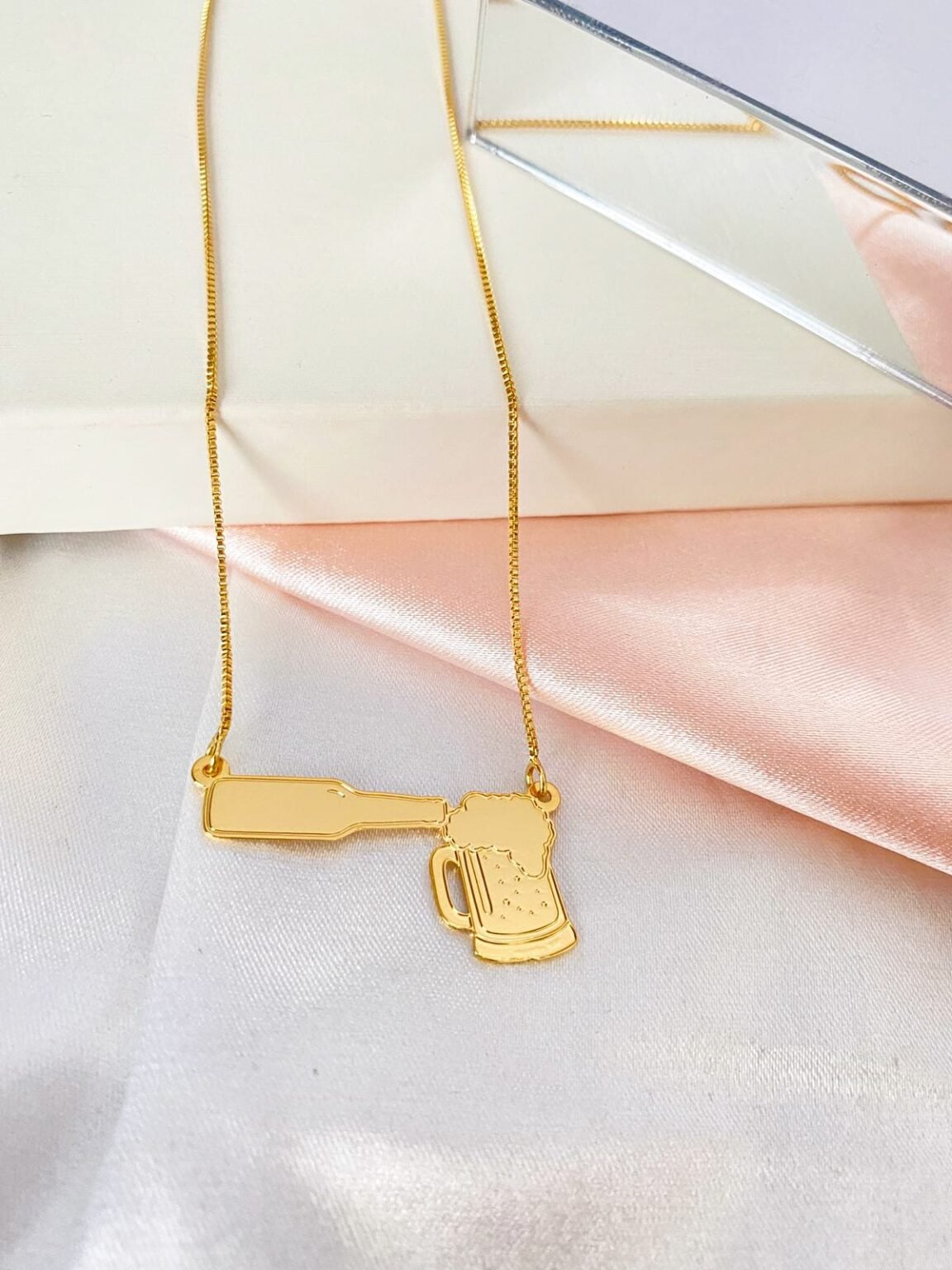 Colar Cerveja, Com Gravação a Laser e sem Resina, Banhado a Ouro 18K