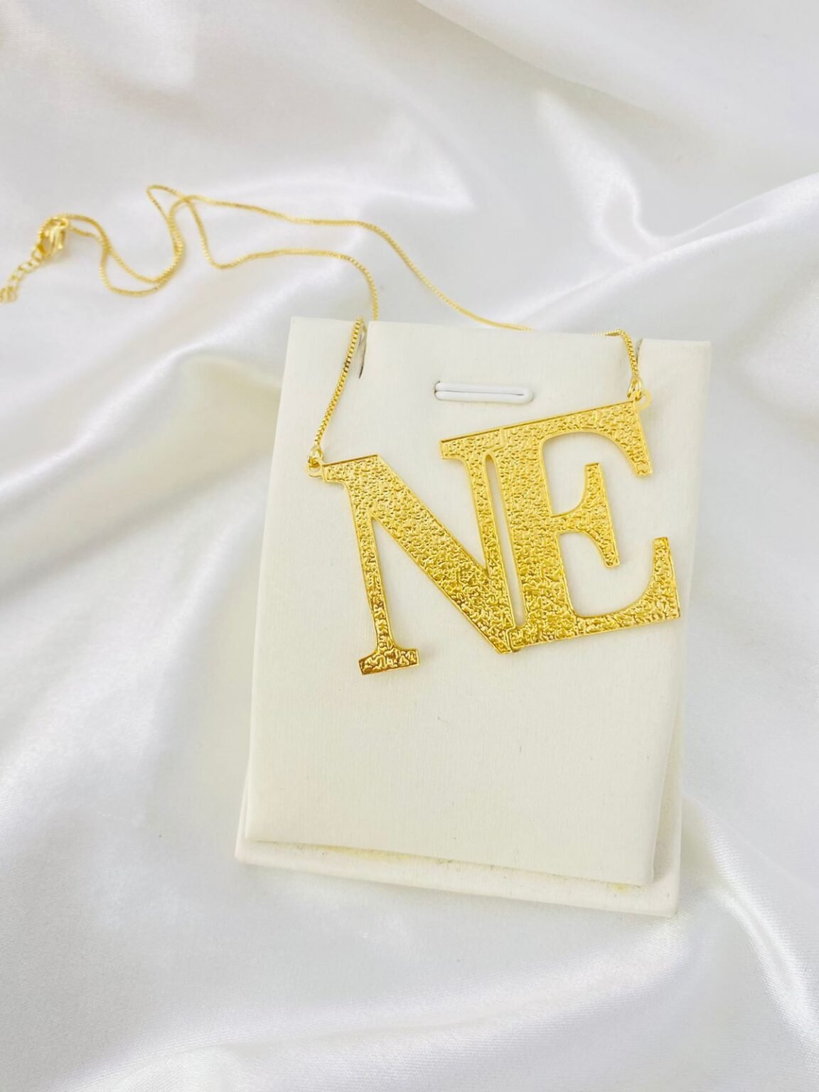 Colar 2 Pingentes Medalha de Nome e Inicial, Banhado a Ouro