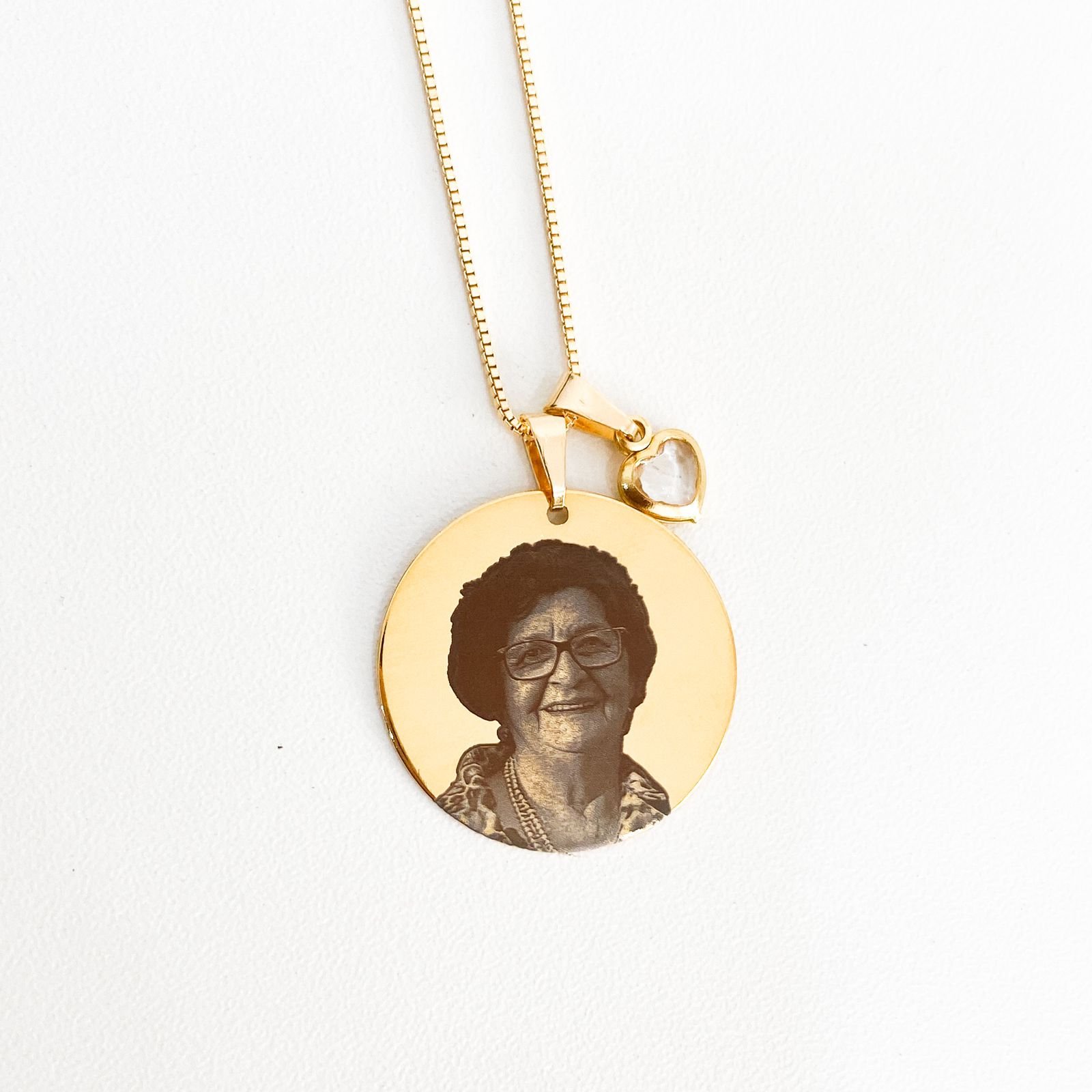Colar Redondo 2cm, Personalizado Com Foto ou Escrita, Banhado a Ouro // ACOMPANHA CORRENTE 45cm.