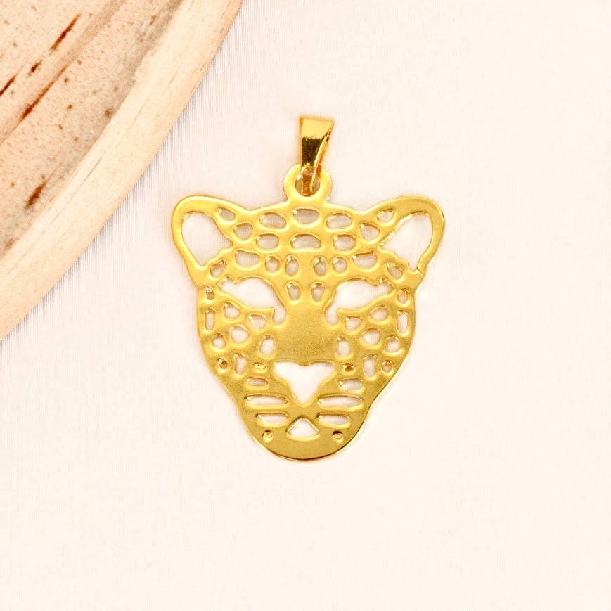 Pingente de Onça Pintada Vazado, Mãe, Pantanal, Banhado Ouro